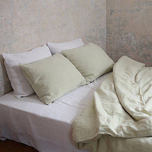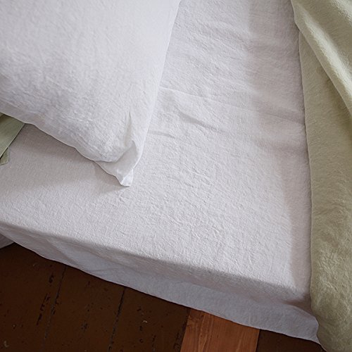 LinenMe Stone Washed Bed Linen Fitted Sheet, 60 by 80 by 14-Inch, Optical White