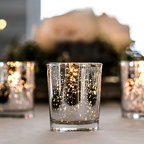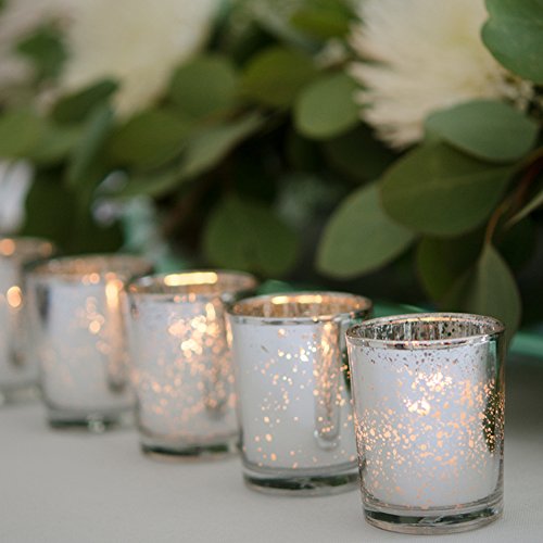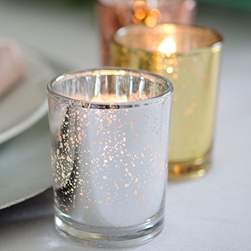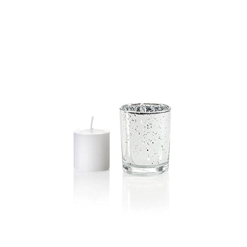 Yummi Set of 36 10 hour Votive Candles & Metallic Holders, Silver Metallic