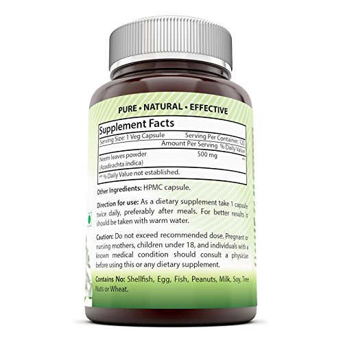 Amazing India Neem 500 Mg 120 Vegetarian Capsules * Promotes Blood Purification , Promotes healthy Immunity and Promotes health Skin *