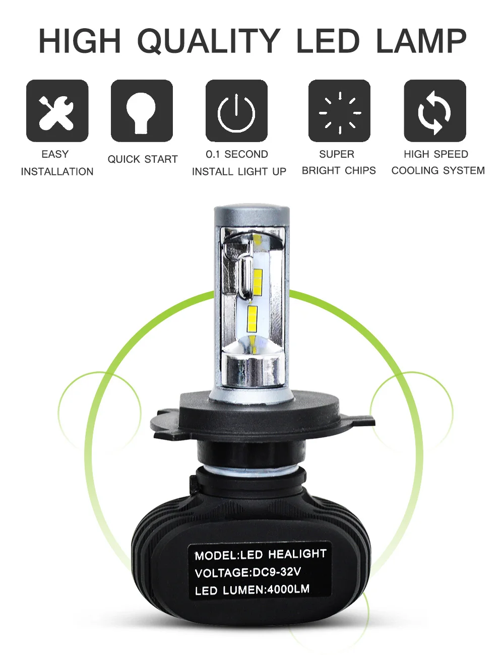 Super Bright Lumen:4000lm/bulb, 8000LM/set