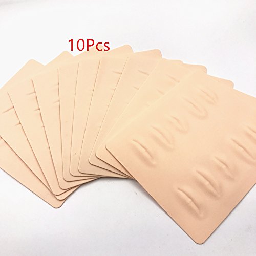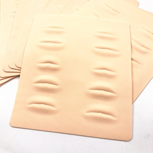 ASIBT Set of 10 Microblading Practice Skin 21.5×18×0.3cm 3D Cosmetic Permanent Makeup Lips Tattoo Training (3d Lips)