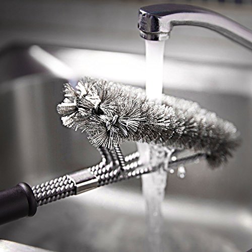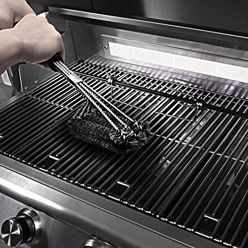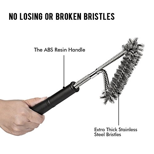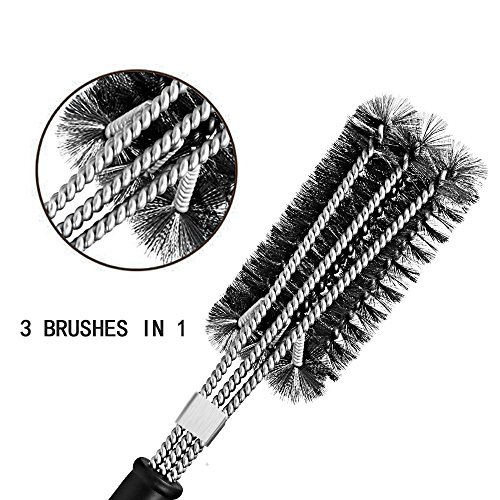 - EFFORTLESS CLEANING: With a unique design, this 18" long barbecue brush has three brushes in one, each with its own equivalent stroke. Be prepared to clean every bit of residue with its inovative 360 degree rotator
