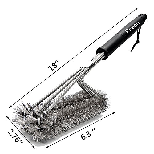BBQ Grill Brush,Preon 18 Inches 3 in 1 Stainless Steel Best Barbecue Grill Cleaning Brush,Durable and Effective – 100% Rust Proof with Wire Bristles & Long Handle & Strength Clip