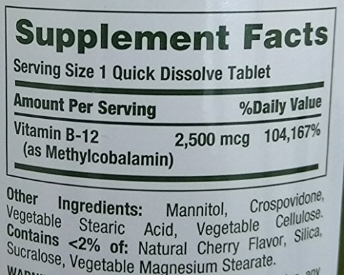 -. Title : Nature's Bounty Quick Dissolve Fast Acting 2500 mcg Vitamin B-12 Methylcobalamin Natural Cherry Flavor (300 tablets)