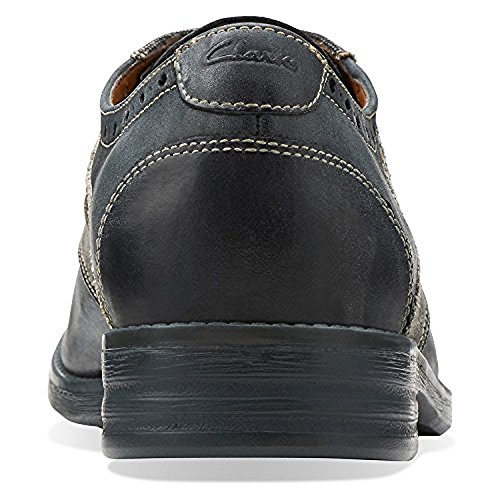-. Binding : Apparel -. Brand : CLARKS -. Department : mens -. Feature : A sleek upper made of mixed materials lends a modern edge to this classic men's lace-up shoe from the Clarks Collection / It's crafted of rich leather and canvas with a fabric lining / The removable footbed and durable rubber outsole promise long-term comfort and support / Heel Height: 1 1/4" -. Label : Clarks -. Manufacturer : Clarks -. NumberOfItems : 1 -. PackageQuantity : 1 -. ProductGroup : Shoes -. ProductTypeName : SHOES -. Publisher : Clarks -. Size : US -. Studio : Clarks -. Title : Clarks Men's Delsin Ox Comfort Lace Up Dress Oxfords