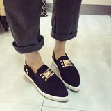 2016春季新款欧美绒面铆钉尖头厚底单鞋休闲一脚蹬懒人豆豆鞋女鞋
