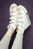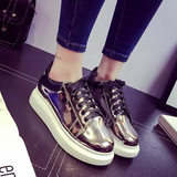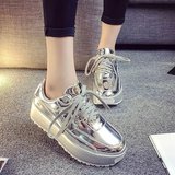夏秋新款银色松糕厚底运动鞋休闲鞋金色系带圆头单鞋女鞋原宿鞋潮