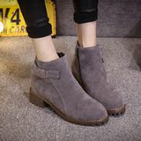 欧美2015秋冬新款侧拉链厚底短靴平底粗跟圆头马丁靴机车骑士靴女