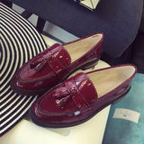 2015秋季新款漆皮圆头低跟粗跟套脚流苏单鞋女英伦韩版学院大牌潮
