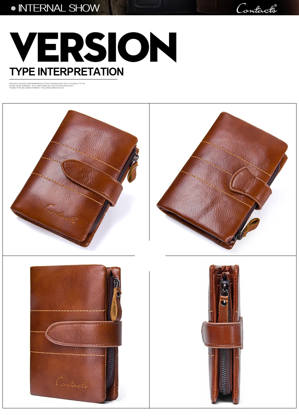 Interior:Photo Holder,Interior Zipper Pocket,Zipper Poucht,Coin Pocket,Interior Compartment,Interior Slot Pocket,Note Compartment,Card Holder
