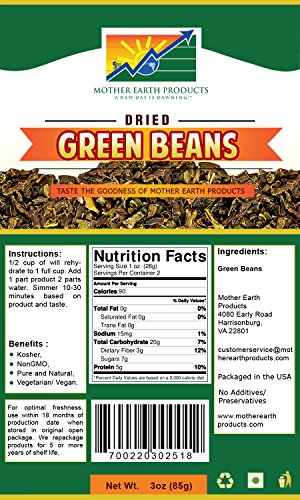 Mother Earth Products Dehydrated Green Beans (2 Cup Mylar)