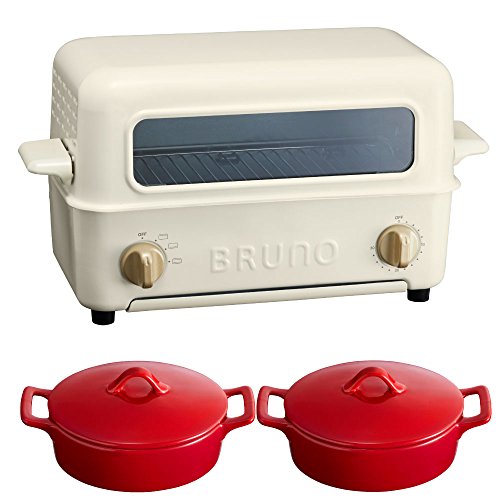 원본상품명: BRUNO トスタグリル BOE-033 + オバルココット ミニ×2 3点セット オブントスタ トップオプン パン 魚きグリル (トスタグリルホワイト+オバルココットレッド×レ