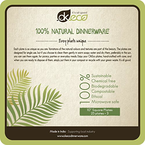 - Safe and Practical: OkEco Natural Palm Leaf Plates are chemical free, produced using nothing but water and heat, so you can relax knowing that you’re getting 25 super useful plates direct from nature