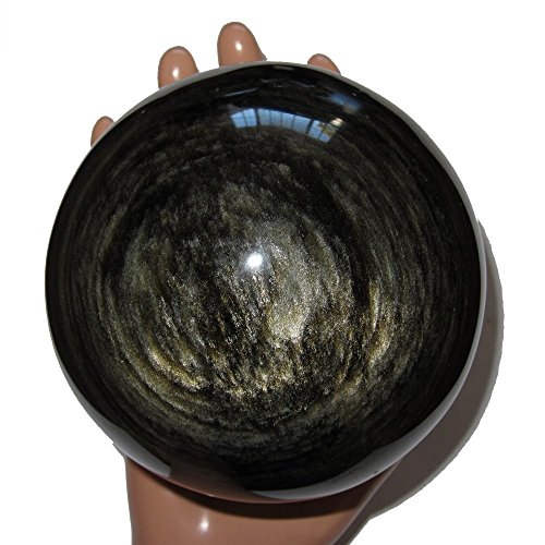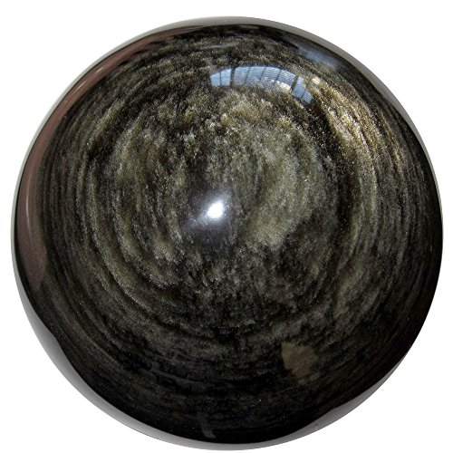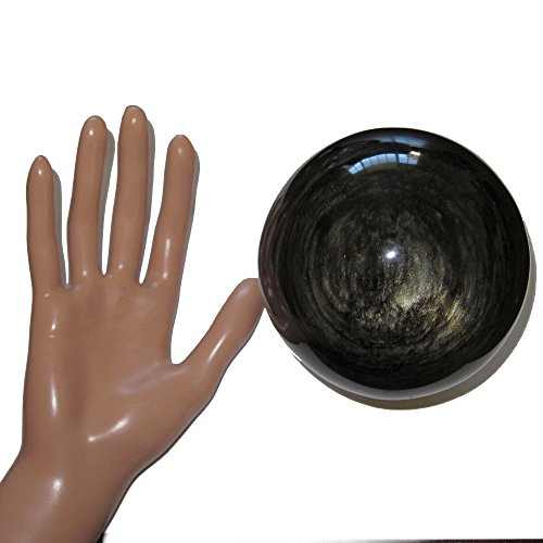 Your large and deluxe sphere is made from obsidian, which is volcanic glass. It appears black in normal lighting, with some white dimples and snowflake markings natural to obsidian. When placed in direct sunlight or very bright lighting, the sphere reveals wonderful gold sheen sparkles. One of a kind protective sphere hand picked by Satin Crystals for you, in a hard to get jumbo size. Receive this exact stone pictured when you order from Satin Crystals.