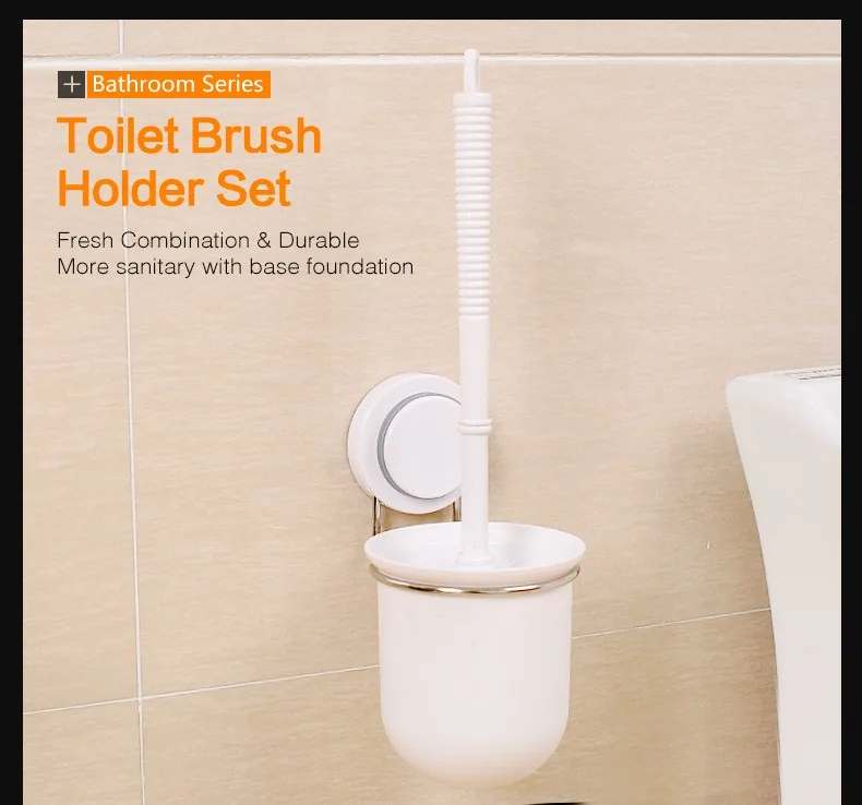 BEEGAGA Wall-Mounted Powerful Suction Toilet Brush Holder Stainless Steel Rack Plastic Bathroom Accessories Cleaning Brush Sets