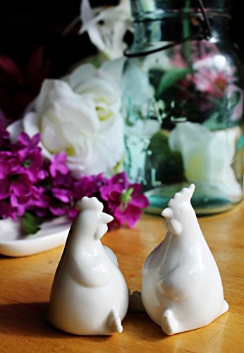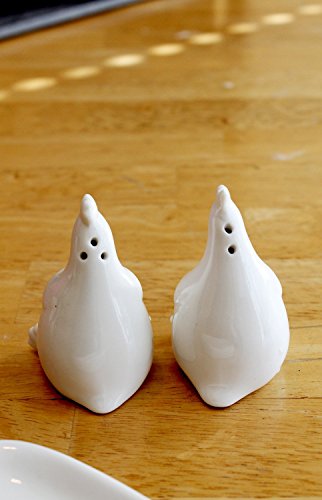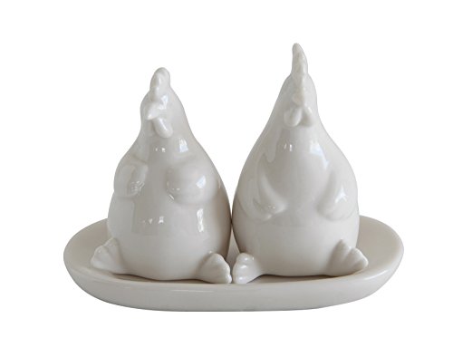 Creative Co-op Ceramic Hens Salt and Pepper Shakers with Plate, White