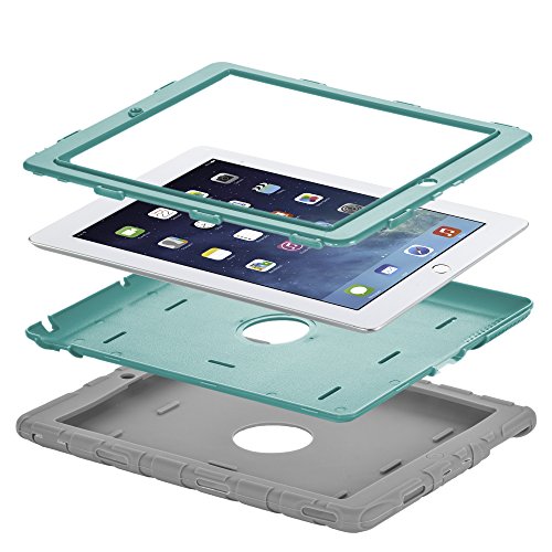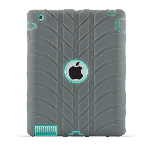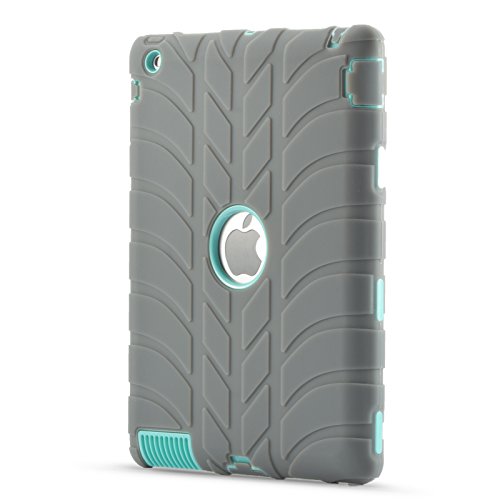 iPad 2 iPad 3 iPad 4 Case- LittleMax Silicone Shockproof [Heavy Duty] Rugged Drop Resistance Tyre Strip Pattern Anti-Slip Dual Layer Protective Cover for Apple iPad 2/3/4-03 Grey Mint