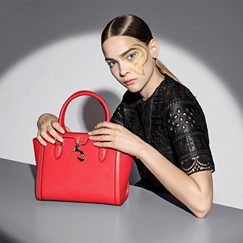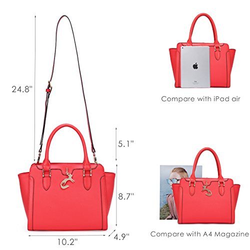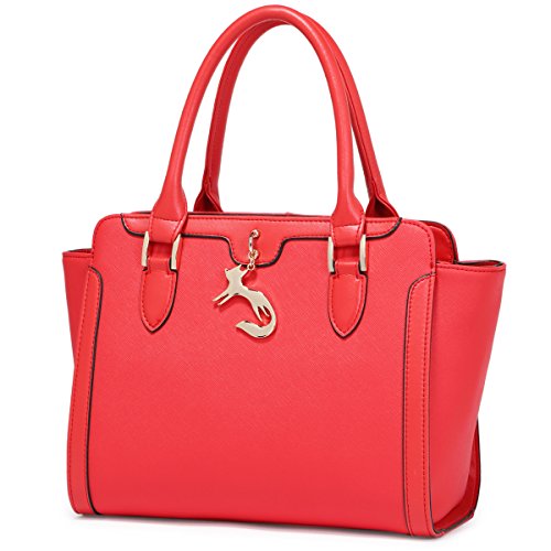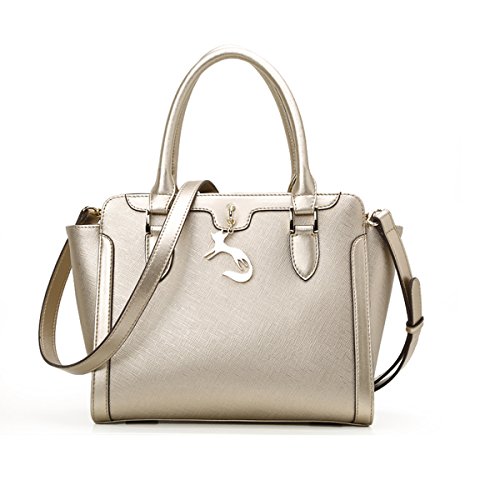 CONCISE & STYLISH - This leather handbag features concise look as well as decorates with golden fox hardware pendant, elegant yet chic.