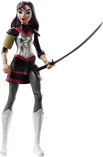 -. Binding : Toy -. Brand : Mattel -. EAN : 0887961368666 -. Feature : Unleash your inner hero with the Super Hero action figures inspired by the students of Super Hero High! / Each 6-inch DC Super Hero Girls action figure is highly articulated and comes with a power accessory for powerful posing and creative storytelling / Molded in durable plastic, they're ready for Super Hero stunts and portable play / Katana comes with her katana sword to add to the action and posing fun / The expert martial artist is ready to save the day in her action-primed outfit (non-removable) that blends iconic elements of the original DC Super Hero character -- bold makeup, white boots and signature armor details -- with modern trends -. Genre : Action -. IsAdultProduct : 0 -. Label : Mattel -. Manufacturer : Mattel -. Model : DVG28 -. MPN : DVG28 -. PackageQuantity : 1 -. PartNumber : DVG28 -. ProductGroup : Toy -. ProductTypeName : TOYS_AND_GAMES -. Publisher : Mattel -. Size : 6 inches -. Studio : Mattel -. Title : DC Super Hero Girls Katana Action Figure -. UPC : 887961368666 -. Warranty : 1 year warranty against manufacturer defects