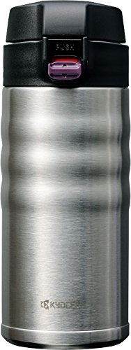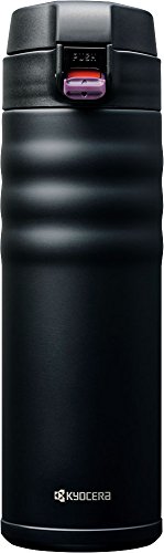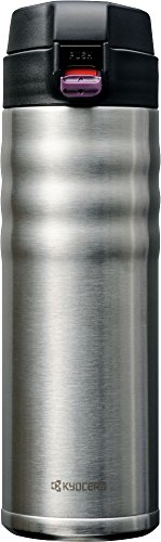 Take your steamy hot or ice cold beverages anywhere you go with Kyocera ceramic coated interior, double wall Vacuum insulated Stainless Steel travel mug. Kyocera travel mug features a thoughtfully designed safety lock lid making it spill proof. The lid can be opened with one hand and the unique exterior design is a delight to hold. The ceramic coated interior eliminates metallic taste, never rusts and will not stain. The wide mouth opening makes adding ice cubes very easy. It's great for indoor and outdoor use including the kitchen, car, work, school, camping, hiking, hunting, picnics and more. Keep drinks hot or cold for at least 6 hours and up to 12 hours depending on the starting temperature of the liquid.Feature