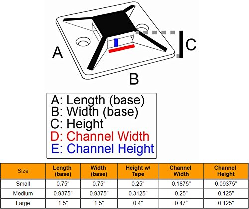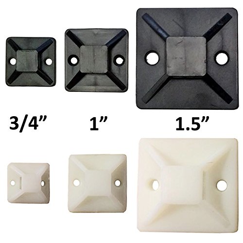 3/4" Adhesive Backed Mounting Bases - 50 Pieces - Color: White