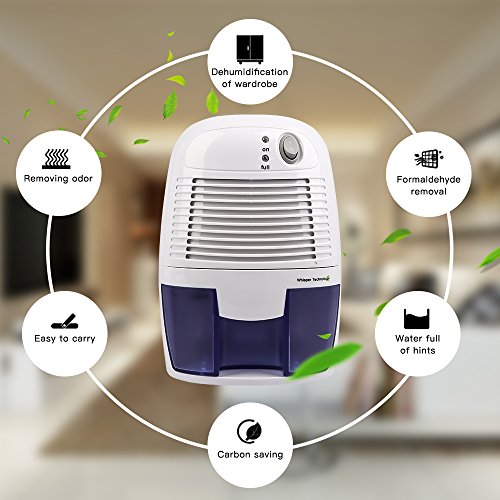 HOUSEHOLD SMALL DEHUMIDIFIERS : compact mini dehumidifier design with exquisite and lovely shape, lightweight and semiconductor air purifier without compressor, transparent water tank with 17 ounce / 500 ml capacity tank extracts up to 9 ounces / 250 ml of moisture daily making it great for small spaces.