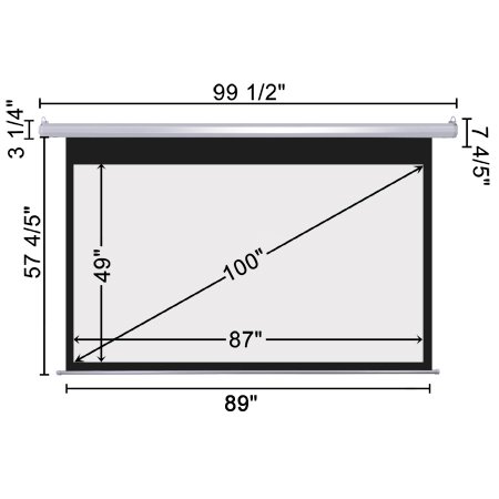 - Title : Electric Projector Matte White Screen 100" 16:9 87x49 In. View Area Switch Auto Remote Control RC Wall Ceiling Mounted Steel Case for Home Office Projection Panel