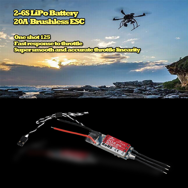 Spider 20A 2-6S LiPo battery brushless OPTO ESC is specially designed to meeting the demand of ever popular multi-rotors,With better quality and competitive price, spider will be your best choice for your multirotors.