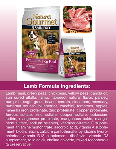 Nature's Gourmet is a grain free dog food formula packed with rich protein sources and farm fresh fruits and vegetables that will keep your dog happy and healthy. Our formulas contain no by-product meal, corn, wheat, or soy which are known allergens. Nature's Gourmet Dog Food provides the right compliment of protein, carbohydrates, fiber, and fats your dog needs to thrive as nature intended.