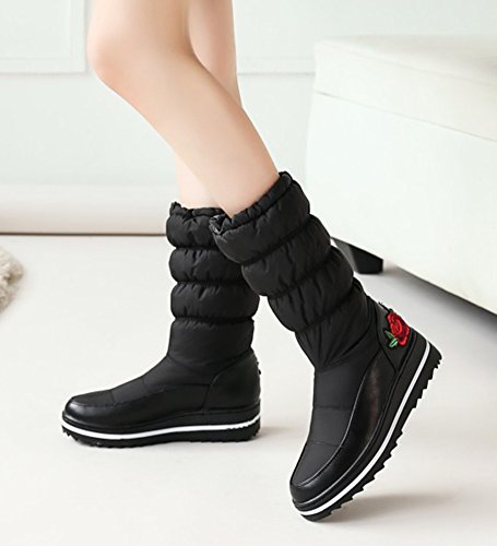 Binding : Apparel Product Description Winter is coming! Do you want a pair of boots both of fashion and warmth? This pair of snow boots is a perfect choice. This lovely shoes features drawstring closure and round toe. The faux fur lined will warm you all winter. You will look chic in their flowers decoration. The sole is made of good rubber. You will feel comfy in their soft bottom. The heels measure 1.6 inches. You will feel comfortable in their mid heels. Its platform is about 1 inches. So you will not feel too tired when walking with them. They are of high quality and durable. Just pick them to show your beauty. SHOWHOW is a well-established fashion shoe brand which carries stylish and affordable women's footwear. We promise will offer you excellent shopping experience. Welcome and pick what you want! 0