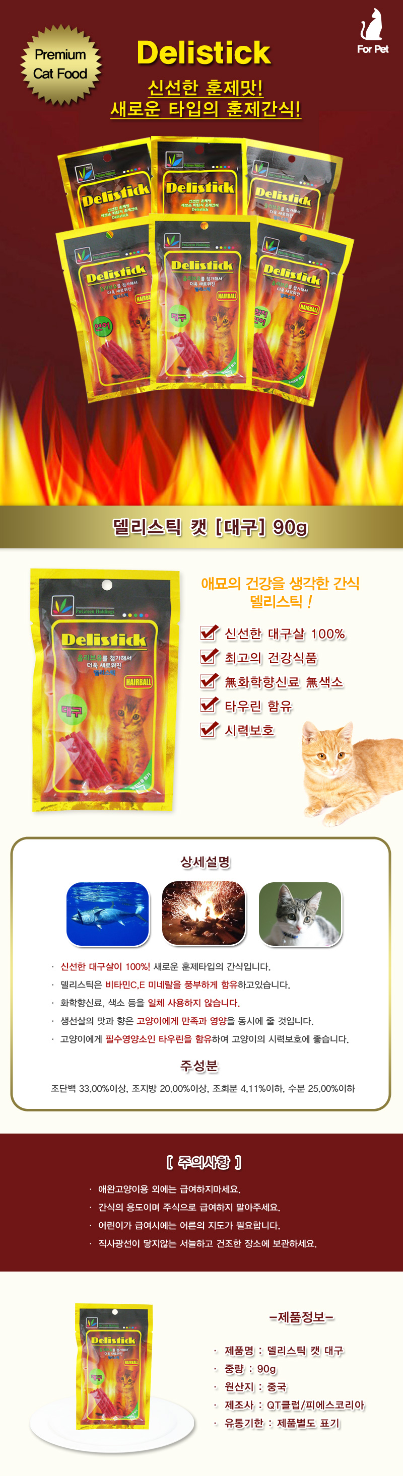 Large capacity cod 90g 5 jerky cat snack cat food smoked nutrition deli stick