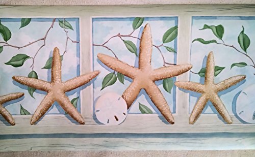 -. Feature : 15 Foot Long Spools - Prepasted Wallpaper Border / Pattern: PE604B / 11 Inches Wide / Starfish, Shells, Seashells Wallpaper Border / Seashore Wallpaper Border