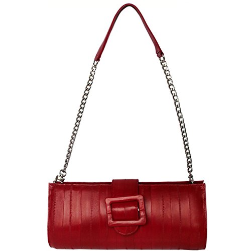 -. Brand : Rainbow -. ClothingSize : One Size -. Color : red -. Department : Womens -. EAN : 0789048133122 -. Feature : Shoulder chain minibag / Jenuine eelskin leather / Handmade and well costructed. / Natural eel skin leather is thin, light, strong and duarable. / High quality eel skin develops soft supple touch with use. -. Model : ade018-red -. ProductGroup : Shoes -. ProductTypeName : HANDBAG -. Size : One Size -. Title : Chain clutch handbag, genuine eelskin leather, removable chain strap - red -. UPC : 789048133122 [ Clutch handbag with removable shoulder chain ]