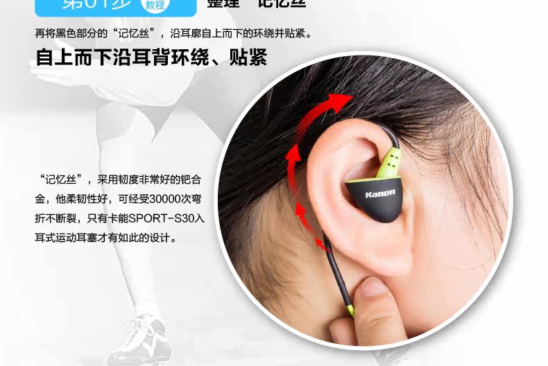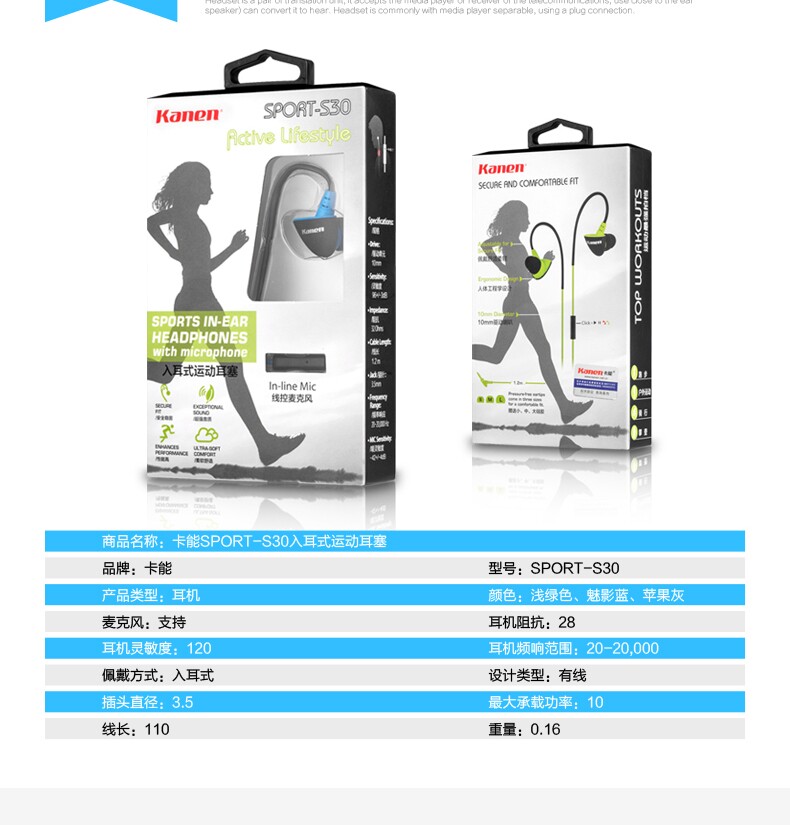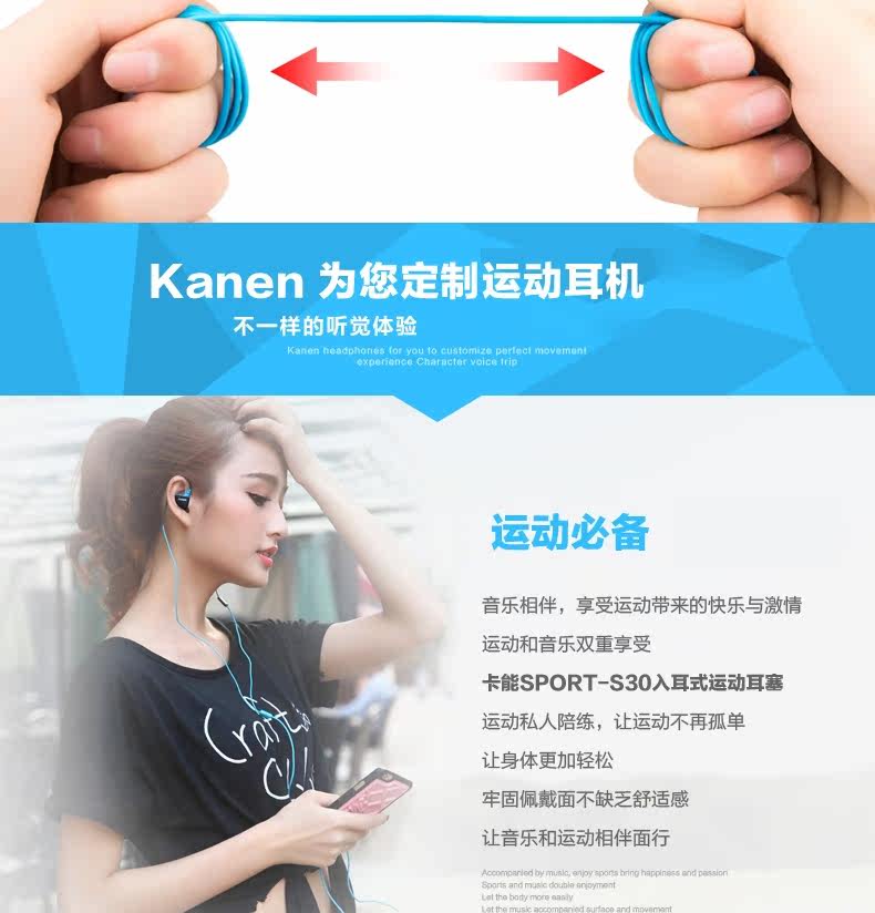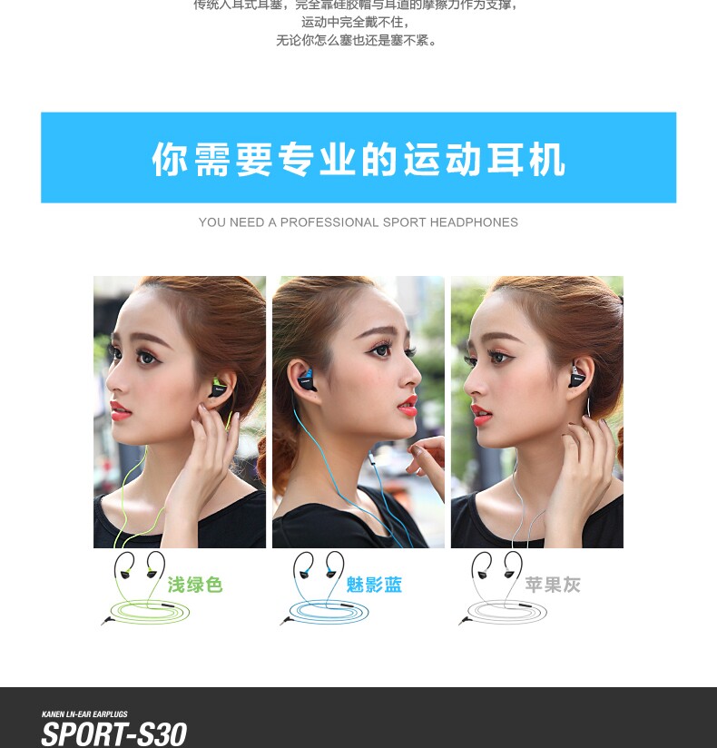 kanen/卡能 s30入耳式运动耳机跑步重低音手机音乐耳带麦通话耳塞