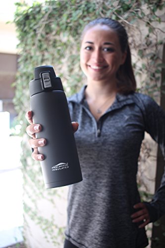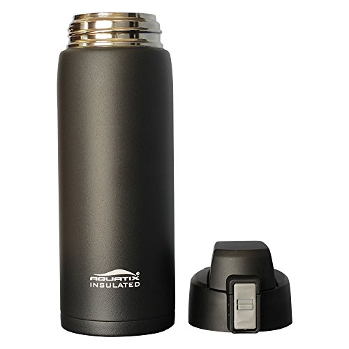 The Aquatix Sporty 21 oz Double Wall Insulated Stainless Steel Water Bottle is perfect for use at the gym, at the office, around your house and anywhere you need to take your beverage of choice with you. Made from durable and sturdy PREMIUM QUALITY, Top Chef 18/8 FOOD GRADE STAINLESS STEEL, this Aquatix Sporty 21 ounce water bottle is a great eco friendly sports bottle. The double wall insulated water bottle is PERFECT for carrying while walking, hiking, camping, use at the gym or just on the go- as it fits MOST car cup holders. No more spills and messes while driving! Ditch those plastic water bottles! GO HEALTHY with this BPA Free, FOOD GRADE stainless steel water bottle that holds a large capacity of liquids 21 fluid ounces and no longer worry about toxins and chemicals leaching into your beverage. Drink crisp, clean, healthy and refreshing drinks from Your Aquatix Water Bottle every time. Just Fill and Go! This sporty bottle features a flip top spout drinking mechanism allows the ease of staying hydrated even while on the go! The flip cap top provides single-handed drinking ability and is perfect for your busy life on the go! Stay hydrated and DRINK MORE WATER with this large capacity 21 ounce water bottle. Double vacuum insulated wall construction contributes to hot teas, soup, coffee or other blends being consistently hot for up to 6 hours. And, for cold water, smoothies, soft drinks, or anything you may need very cold, 24 hours of insulated confidence, guaranteed cold, period! The bottle will not "sweat", meaning it will not create condensation which may leave a "ring" of liquid on your expensive buried walnut side table. Easy to hand wash or clean, NO aftertaste after cleaning. COLD LIQUIDS or HOT LIQUIDS! This is a double wall insulated water bottle that is made of 18/8 food grade stainless steel water bottle! No other bottle has all the features of our Aquatix Sport Bottle!Feature