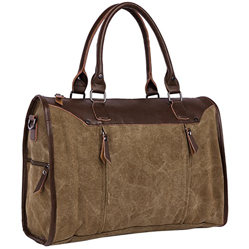 Berchirly duffel series offer you durable canvas duffel bag in high quality and fashion simple style. This men bag is large enough for your 17 inch laptop/computer, shoes, clothes and A4 files. This Berchirly laptop bag is also perfect for your business trip/ outdoor camping/ daily commutes for its durability, vintage style and premium hardware.