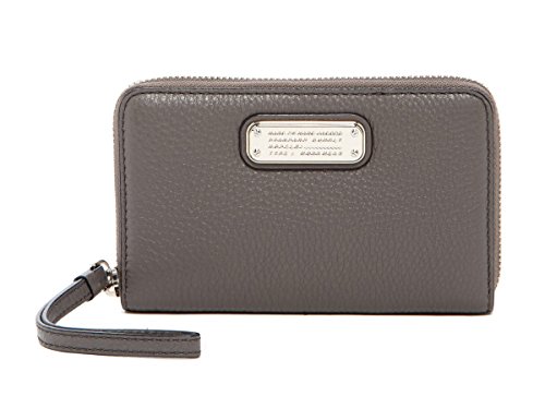 MARC by MARC JACOBS Q Wingman Wristlet Wallet With its slim silhouette, polished logo plaque, textured leather exterior and excellent interior organization, the New Q Wingman has everything you want in a wallet and more. Zip-around closure Interior zip, wall and cell phone pockets; five card slots; ID window Material: Leather Color: Gray Dimensions: 4" H x 6.5" W x 1" D Strap: 5 1/2"