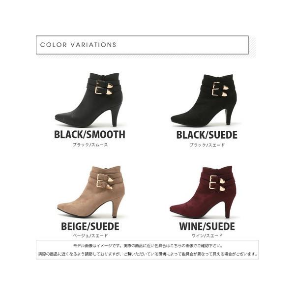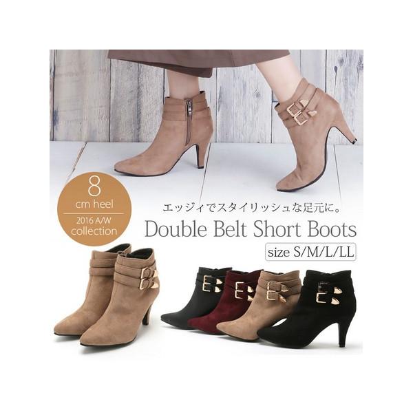 ダブルベルトデザイン、8cmヒールのシンプルなブーティ。内側ファスナー付きで脱ぎ履きが楽々!ポインテッドトゥのスッキリとしたシルエットです。※発送方法は宅配便限定となります。※カラーは、ブラックスムースのみとなります。●サイズ●S/22.5cmM/23.5cmL/24cmLL/24.5cmヒール:約8cmストーム:約-cmMサイズ計測甲幅:約14.5cm底幅:約7.5cm履き口:約26cm筒丈:10cm●素材●合成皮革●注意事項●*撮影場所やイメージにより実際の商品と色味が若干異なる場合がございます。