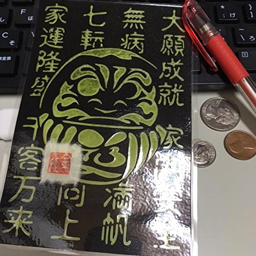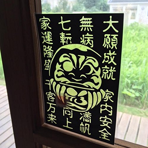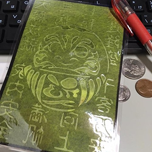 Cutout picture Japanese art collage KIRIE “Kanji characters that bring good fortune & Daruma” Made of Washi(Japanese paper) Green tea, 4” x 6”