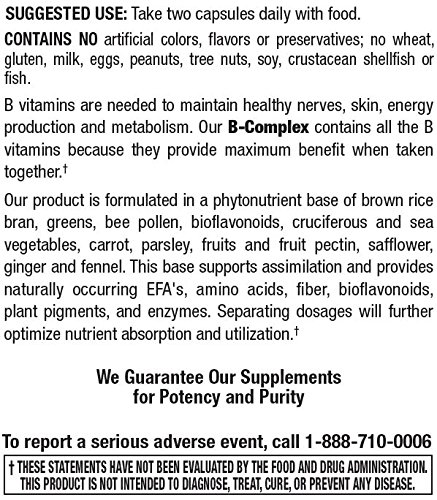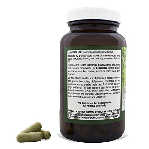 -. Feature : SUPPORTS ENERGY, NERVOUS SYSTEM HEALTH AND MORE - Whole Food Vitamin B Complex contains a raw form of vitamins B12, B6, B1, B2, B3, B5, B7, and B9 to help reduce stress, promote energy production and a healthy nervous system. Additional benefits include skin, hair, eye and metabolic health. / WHOLE FOOD SOURCE - Vegetarian, Vegan, Gluten Free, Dairy Free and Soy Free capsules contain a pure, phytonutrient blend of rice bran, barley grass, apples, parsley, safflower oil, carrots, broccoli, prunes, spirulina pacifica, cholorella, kelp, ginger, fennel seeds and more! / CERTIFIED POTENCY- Proudly made in the USA in a Good Manufacturing Practices (GMP) certified environmentally friendly facility also certified by the FDA (Food and Drug Administration) and registered with the U.S. Drug Enforcement Administration (DEA). / BPA-FREE GLASS BOTTLES - Designed for quality, purity and potency, our supplements are sealed in environmentally friendly amber glass bottles with best by dates and heat-sealed sleeves. / TRUSTED BY AMAZON SHOPPERS - Natural Nutra has a 99%+ positive feedback rating because of our commitment to total customer satisfaction. If anything is wrong with your order, we'll make it right or you can return your supplement within 30 days for a full refund.
