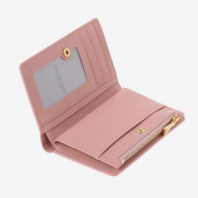 가죽의 결이 살아있는 사피아노 가죽 바탕에 골드 로고 장식으로 포인트를 준 중지갑입니다.