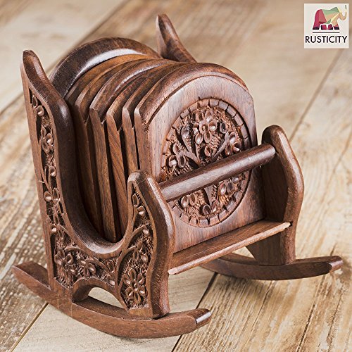 Rusticity Cool Wood Coaster Set of 6 - Rocking Chair| Handmade | (3.25x3.25 in)