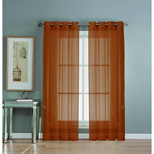 Window Elements Diamond Sheer Voile Extra Wide 56 x 84 in. Grommet Curtain Panel, Rust