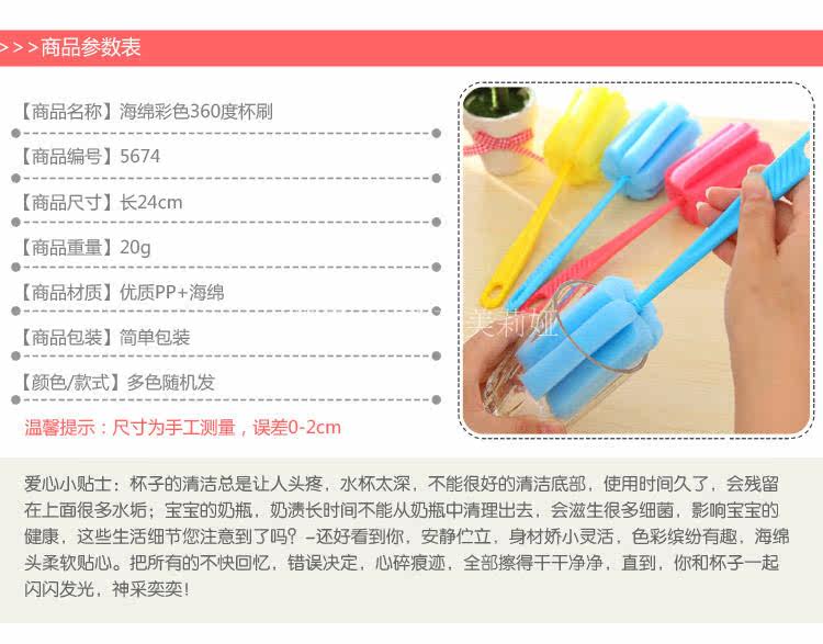 加长海绵洗杯刷 杯子刷 清洁刷 带手柄海绵杯刷 柠檬杯刷 卫生刷