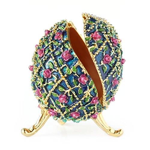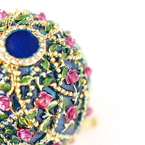 Hand-Painted Vintage Style Faberge Egg with Rich Enamel and Sparkling Rhinestones Jewelry Trinket Box (Lavender Roses)