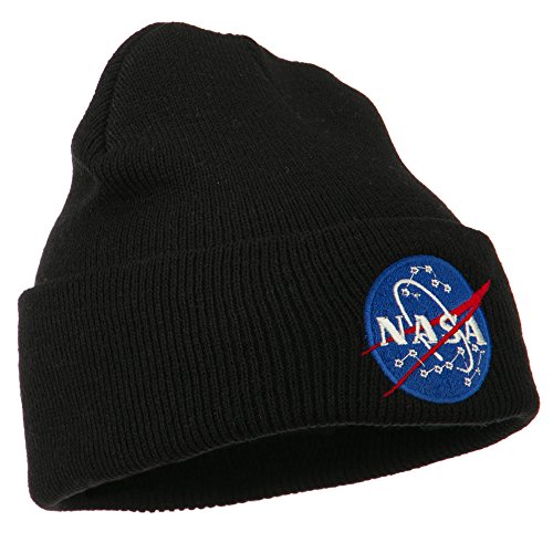 -. Binding : Apparel -. Brand : E4hats -. Department : mens -. Feature : Made of 100% acrylic. / One size fits most with flexibility, fitting up to XL. / Adult/Unisex. / Crown measures 9 inches long and 7 inches wide. / Cuff measures 3 inches long. -. ProductGroup : Apparel -. ProductTypeName : HAT -. Title : NASA Insignia Embroidered Long Beanie - Black