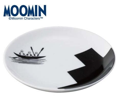 船を漕ぐニョロニョロが描かれたシンプルなデザインのお皿です。