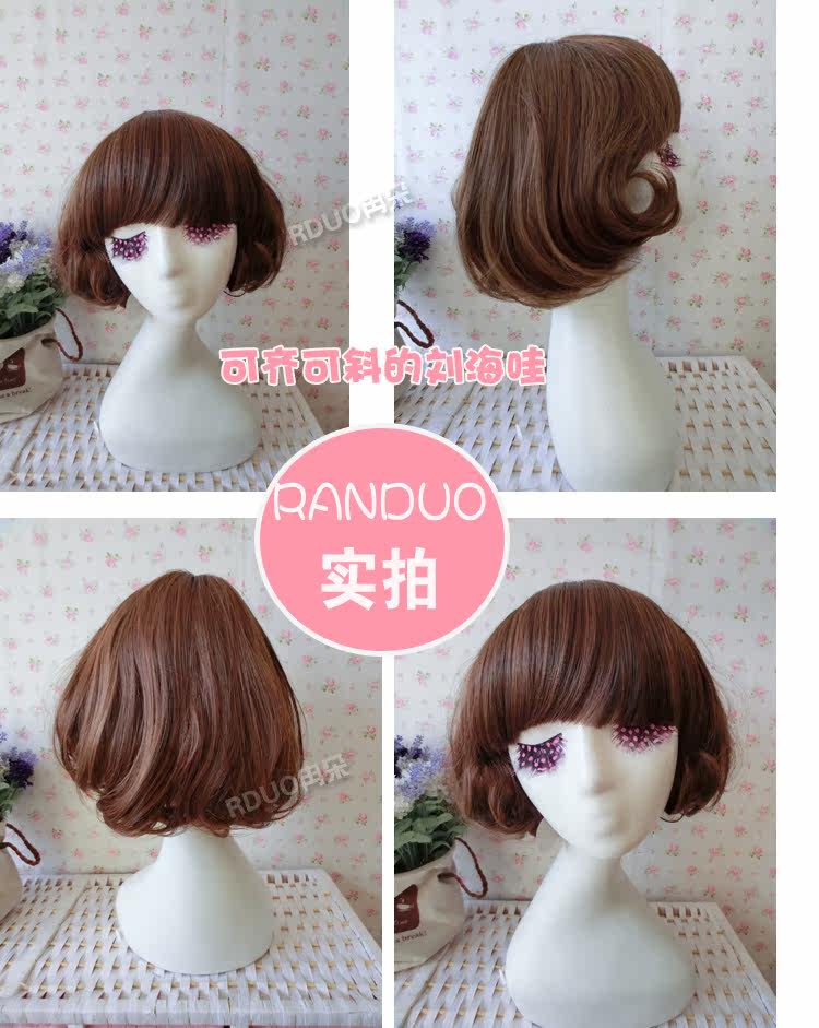 Brand: RANDUO JeanLength: 26 cm (error 3 cm)Style: short curly hairHair: breathable meshNetwork: the network can adjust the size of the petals for any typeColor: light colorThis is the Qi oblique bangs bangs