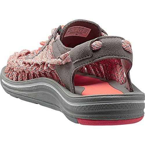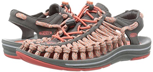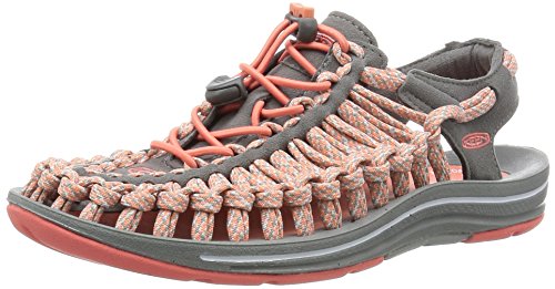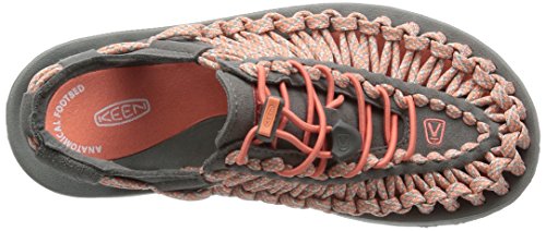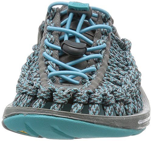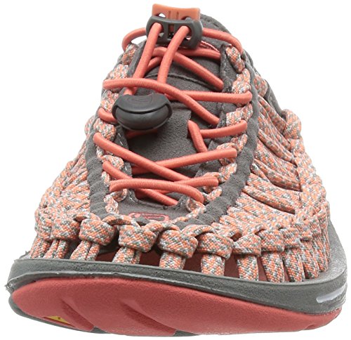 Studio : Keen Publisher : Keen Binding : Apparel Product Description Innovative 8mm cord upper construction features polyester braided cord with a nylon core that provides increased strength. Two cords and a simple, free-moving cord junction design allows the upper to move and adapt to the foot's shape, promoting enhanced freedom of movement that doesn't compromise structural support. Bungee-lacing system offers a secure fit and feel. Microfiber heel back provides both security and comfort. Features Cleansport NXTa"¢ treatment for natural odor control. Metatomical footbed with microfiber cover molds to the foot for the perfect fit and feel. Lightweight PU midsole supplies lasting, daylong comfort. High-traction, non-marking rubber outsole with razor siping delivers secure, reliable traction. Imported. 0