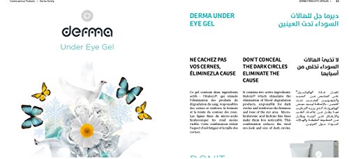 - Preserve the Elasticity: Derma under eye gel is a unique paraben free complex with Chenopodium Quinoa Seed extract, Glycine Soja (Soyabean) & Hydrolysed Rice Bran protein. Preserves the elasticity of dermis, reduce dark circles, fine lines and wrinkles.